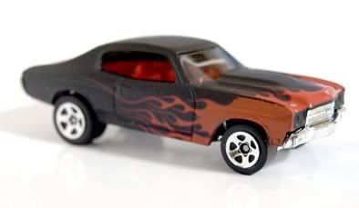 Conforme mostramos por aqui no último dia 16, foi apresentada a primeira imagem de um '70 Chevelle SS escuro, com flames na parte frontal, apontando-o como novidade para a mainline 2008. Até aquele momento não tínhamos mais informações sobre o Muscle Car , mas com a divulgação da listagem oficial de minis pela Hot Wheels, confirmamos a sua presença na série Web Trading Cars. Sendo assim, veja novas fotos tiradas pelo colecionador Rayz - HWC.